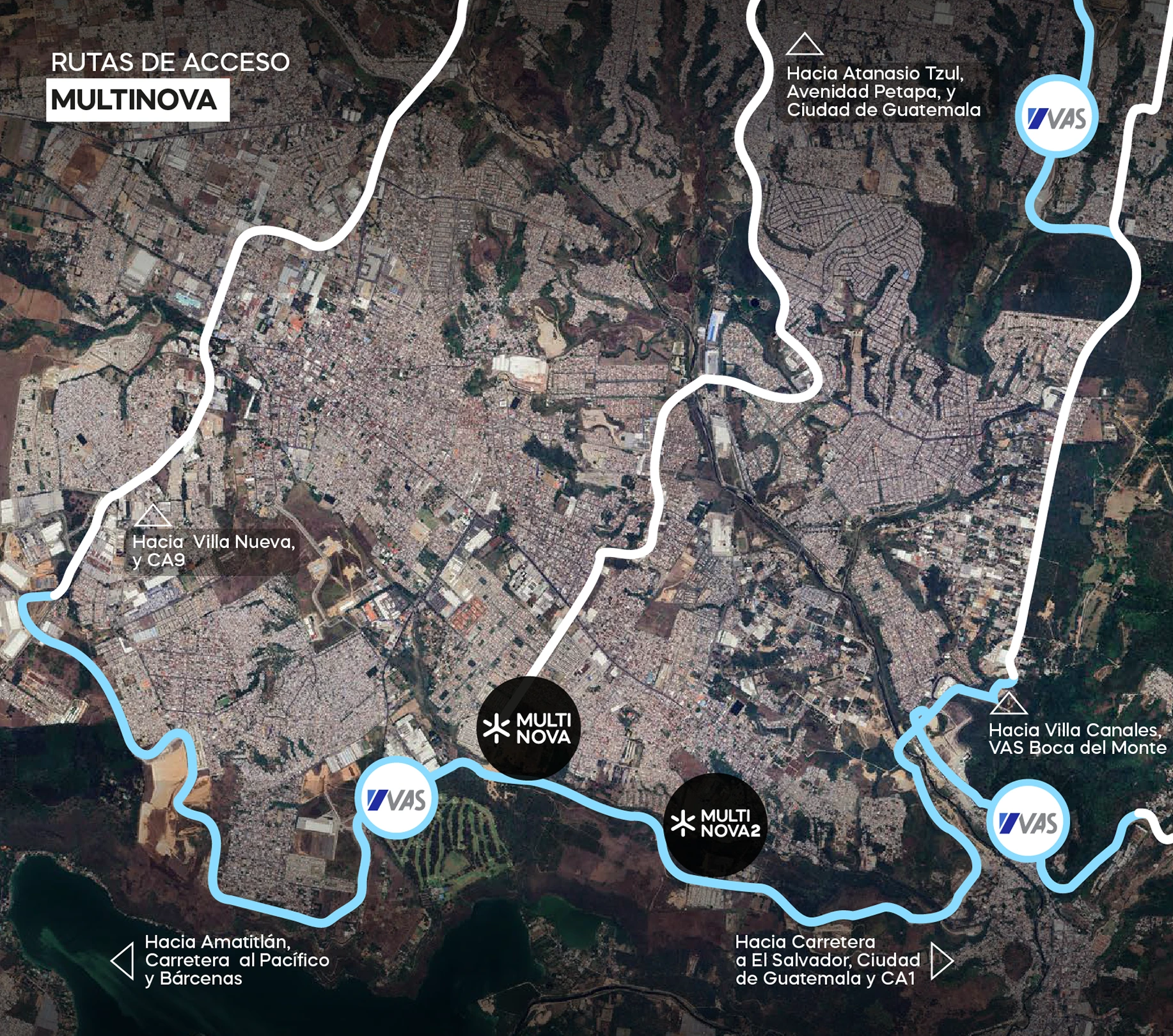 Multinova 2 se ubica en San Miguel Petapa, un punto estratégico para distribución, acceso y conectividad dentro del área metropolitana.